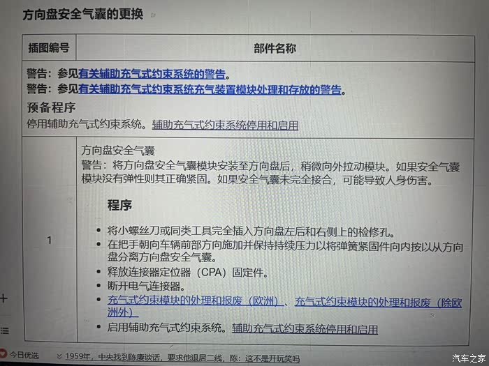维修资料 拆除气囊