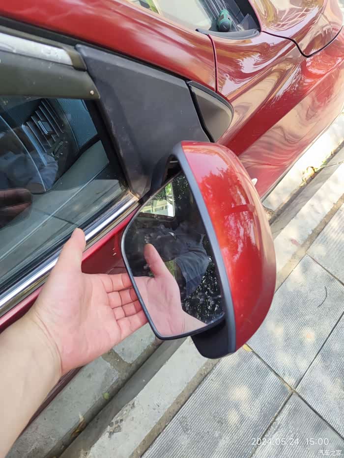 正对后视镜,双手扣住镜片左右下方,使劲往外扳(扣)。