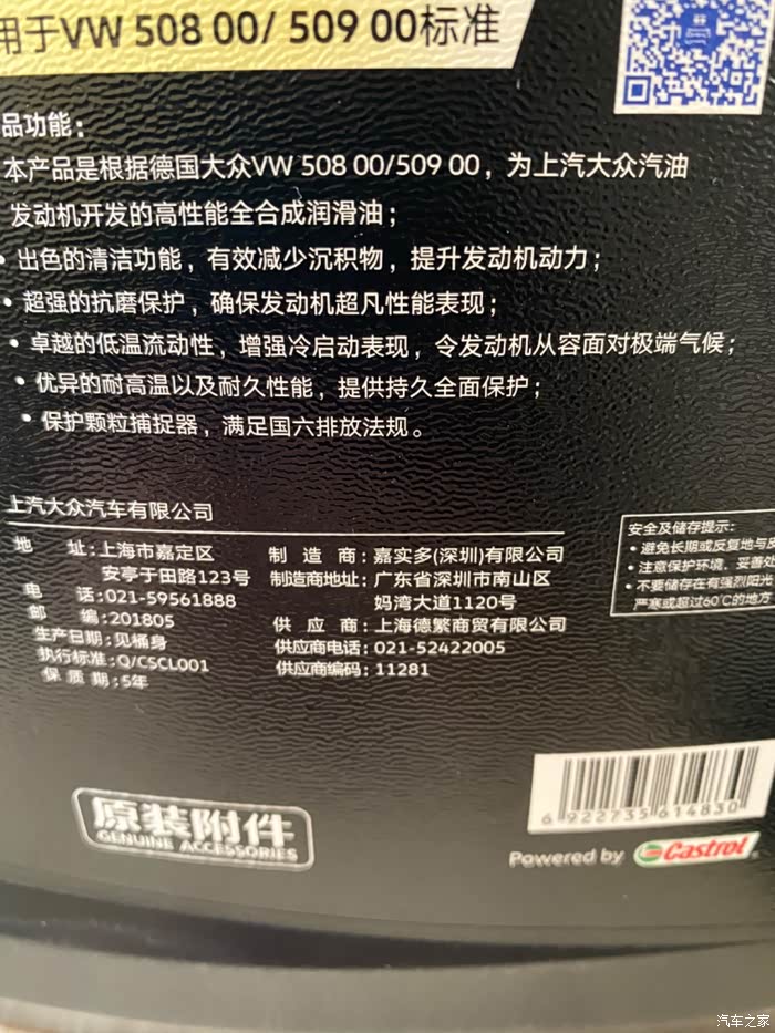 这是大众黑钻 嘉实多代工