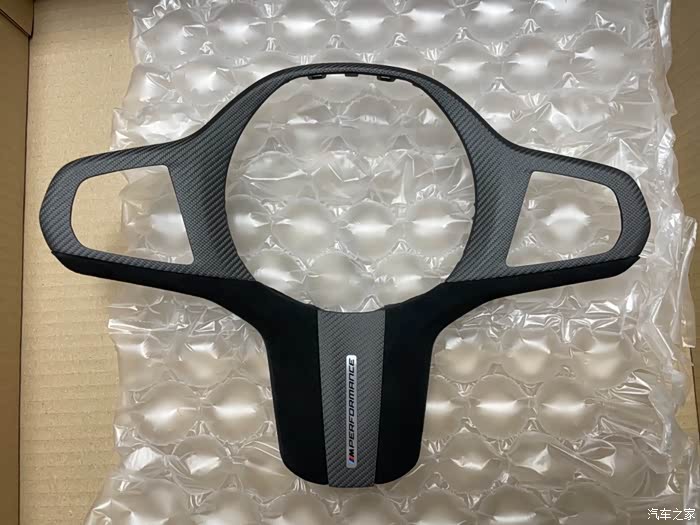 手感爆炸好——原车的真皮方向盘手感也很好,很软。MP略硬,但造型硬朗,握起来特别有肌肉感,很战斗。Alcantara手感确实不错,一点也不滑。MP盘子比原车M盘略细一点,原车的我觉得有点粗。