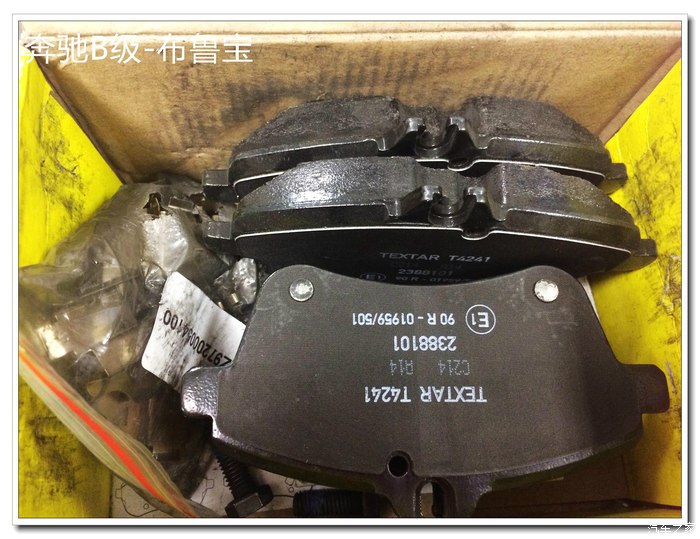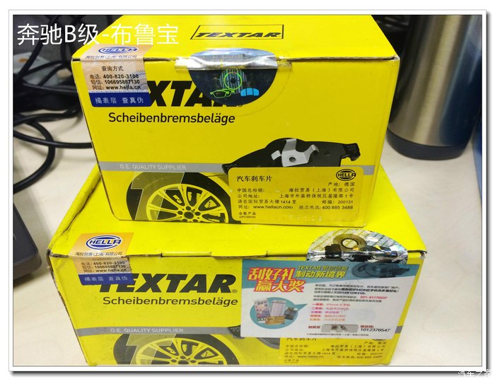 这个就是传说中的海拉泰明顿Textar德国原装进口刹车片了,下面大盒子是前刹车的,上面小盒子是后刹车的。
