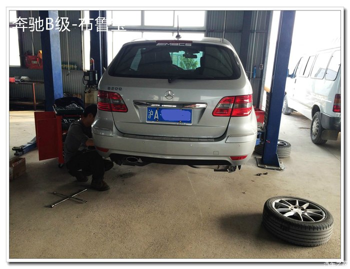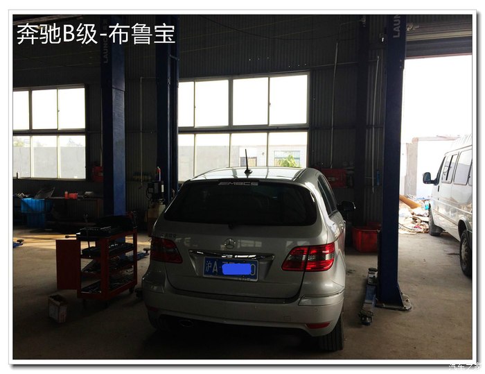 好了,东西到了自然要进口更换了。用养车无忧搜索了一个离我家比较近的修理厂,介绍是说专修奔驰宝马啥的,而且评论都还不错,周六(就是今天)吃过午饭,马上杀过去。办公室里有个小MM在上网,一问价,说按养车无忧的价格来,一共200元人工(我在网上看的是更换前刹车片人工100,后刹车没有报价,估计差不多)。而且他们家经常修奔驰宝马,对B200型号很熟。