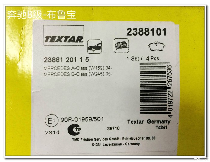 这个是具体型号,看来老A(W169)和老B(W245)通用,最下面能看出产自德国。