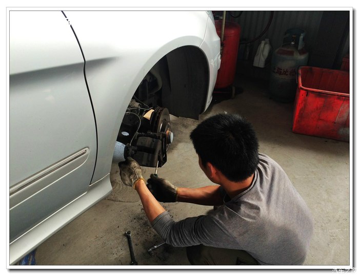 然后把四个轮子装回去就大功告成了。不过刚安好的刹车需要上车使劲多踩几下刹车,让其复位即可。
