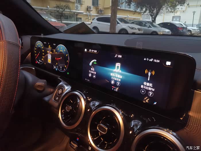 来看看驾驶室的全貌,从GLB的细节方面来说,大面积镀铬饰条的加入,提升了GLB奢华感,