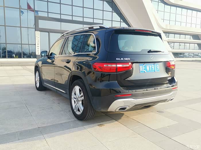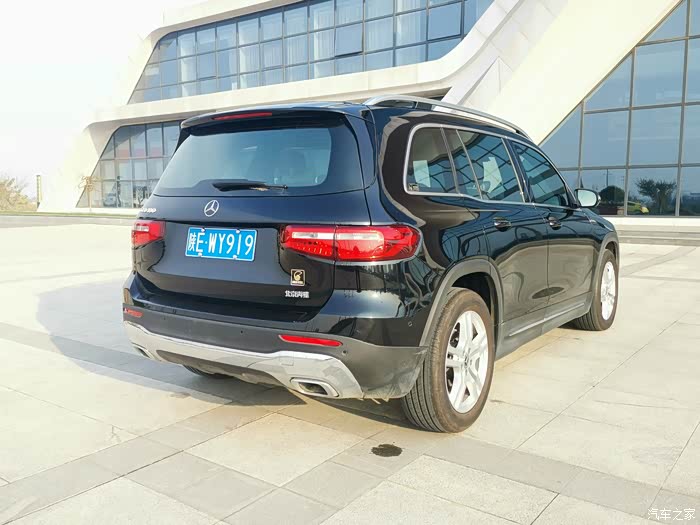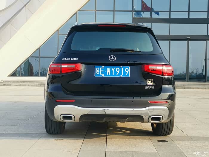 来看看车尾部,车尾同样采用三色设计,车身加塑料饰板加镀铬下护板的设计风格,整体上与车头相呼应。GLB后排气管采用双边双出的设计风格。