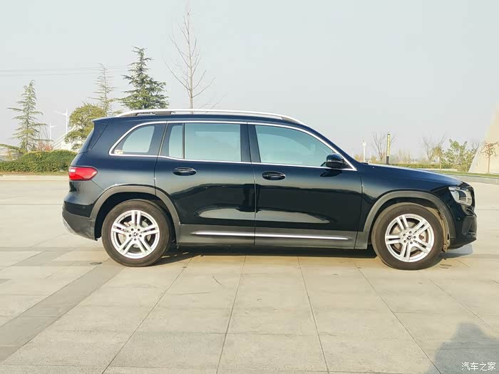 来张侧面照,GLB车身采用双腰线设计。上腰线自前轮翼子板向后延伸至后门处向下与后轮翼子板相连接。下腰线自前门中向后延伸至后门中,下部带有黑色塑料饰板,并启用镀铬亮色饰条予以点缀,整体上很时尚。