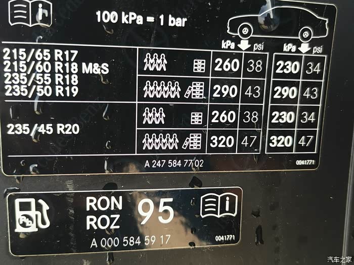 油箱盖内的轮胎气压说明和加注汽油的标号。千万不要加错哈,否则会产生爆震燃烧滴