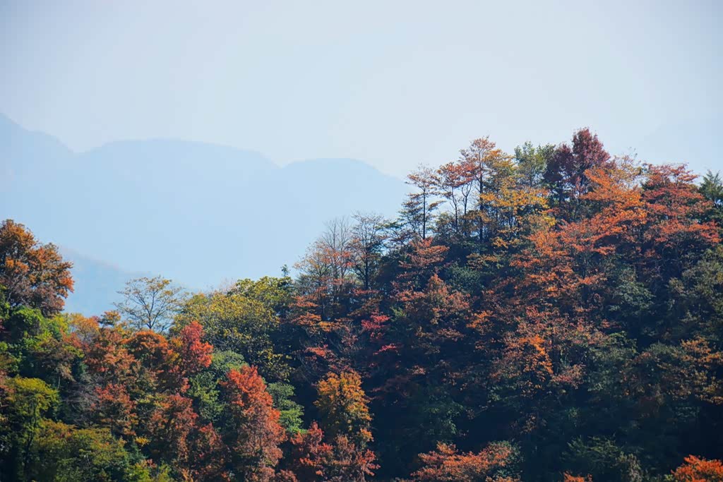 深秋,驱车登山,远看天高云淡,近观层林尽染。