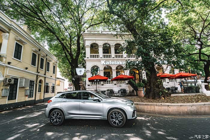 绕了一圈寻找停车位,vv7刚开过星巴克的时候稍有格调,于是让朋友快速记录下这个独特的画面。时尚前WEY的VV7与浓郁广味的园林建筑来了一个碰撞,让人眼前一亮。