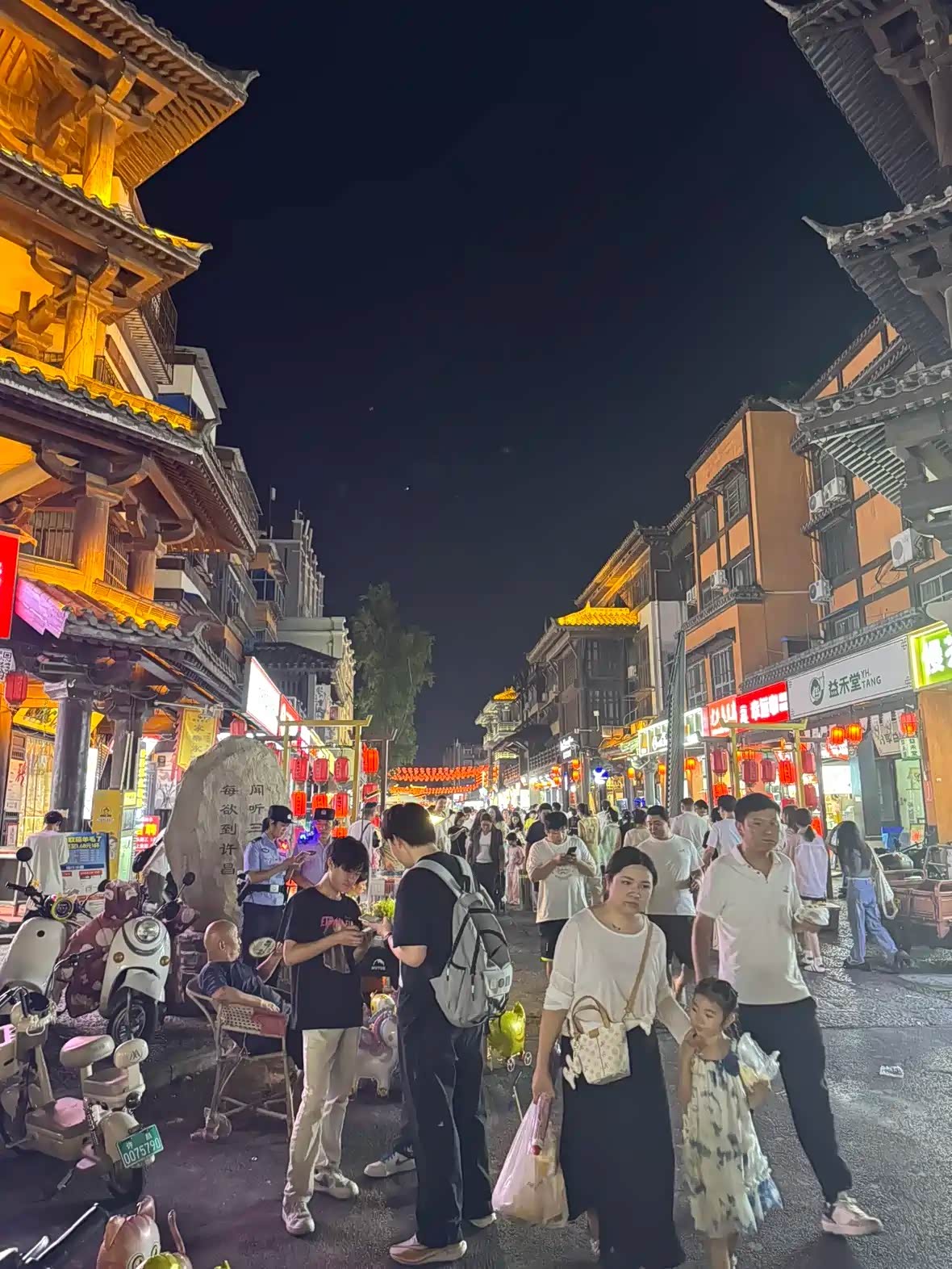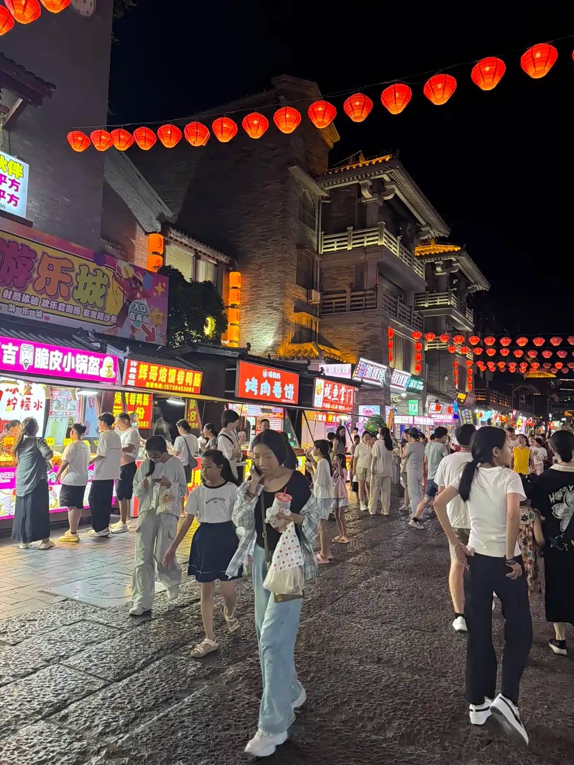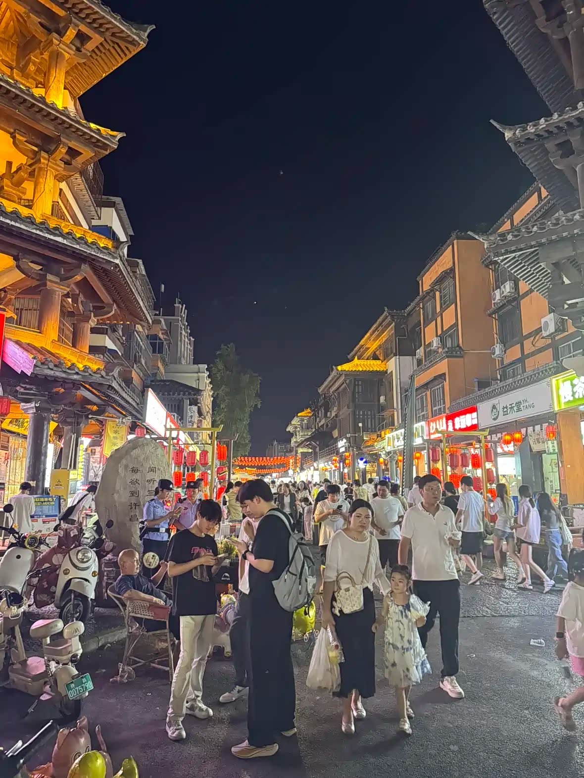 古城的夜晚,灯火辉煌,古建筑加上灯光的照射,仿佛再现三国时期魏国的繁华。盛夏的古城,即使天热炎热,但也阻挡不了游客的热情,街道上人山人海,两边很多工艺品,装饰品店,当然让人流口水的美食也少不了。古城里,随处可见的游客们穿上古装,带上簪花在古色古香的建筑旁拍照,仿佛穿越时空。