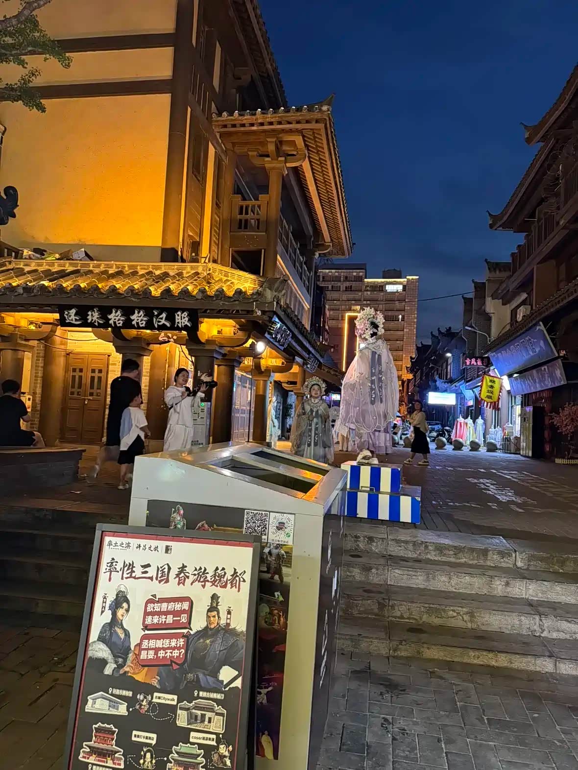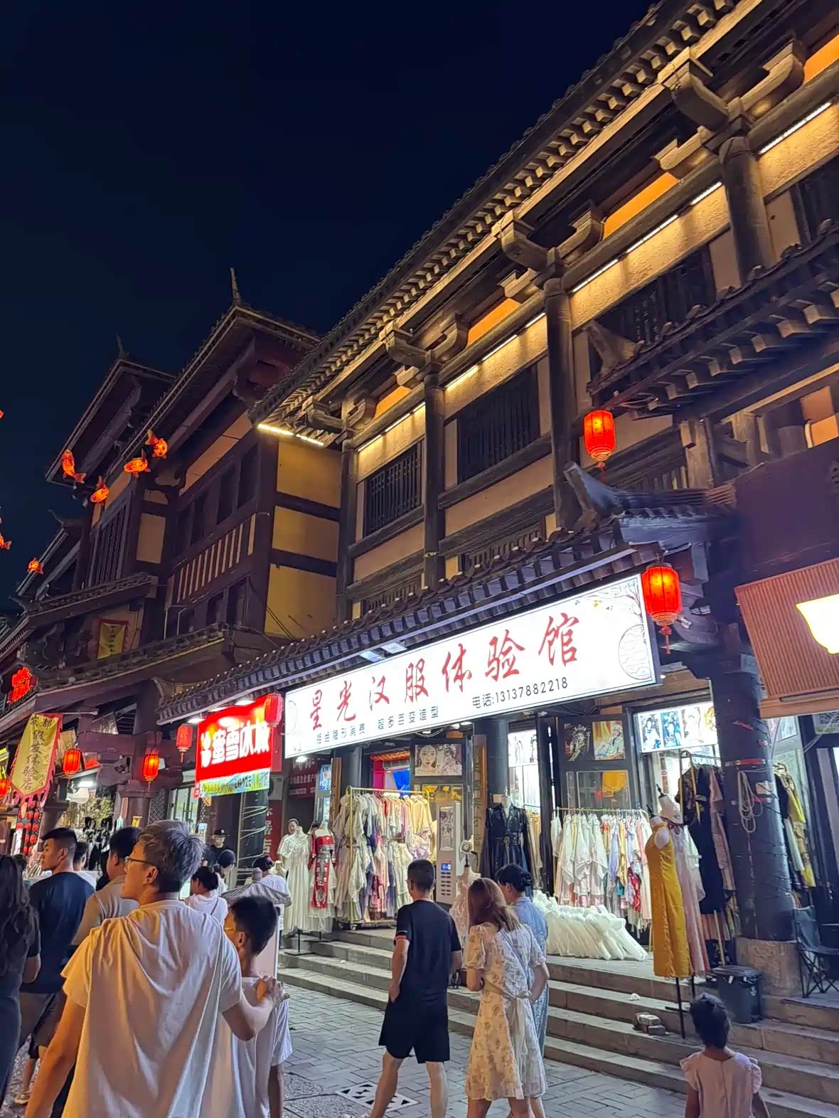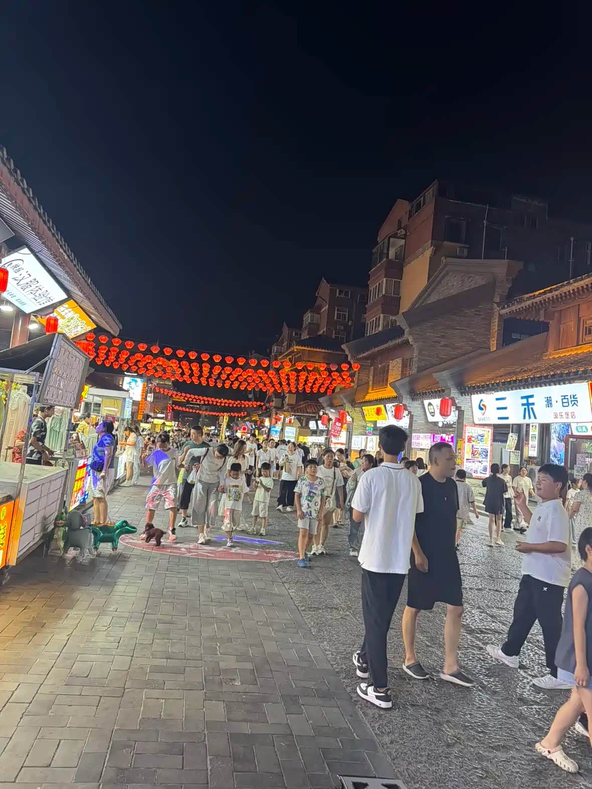 古城的夜晚,灯火辉煌,古建筑加上灯光的照射,仿佛再现三国时期魏国的繁华。盛夏的古城,即使天热炎热,但也阻挡不了游客的热情,街道上人山人海,两边很多工艺品,装饰品店,当然让人流口水的美食也少不了。古城里,随处可见的游客们穿上古装,带上簪花在古色古香的建筑旁拍照,仿佛穿越时空。