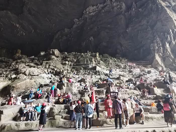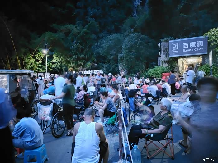 傍晚时分的百魔洞门口人山人海,大家都在这里吸氧、蹭磁和纳凉