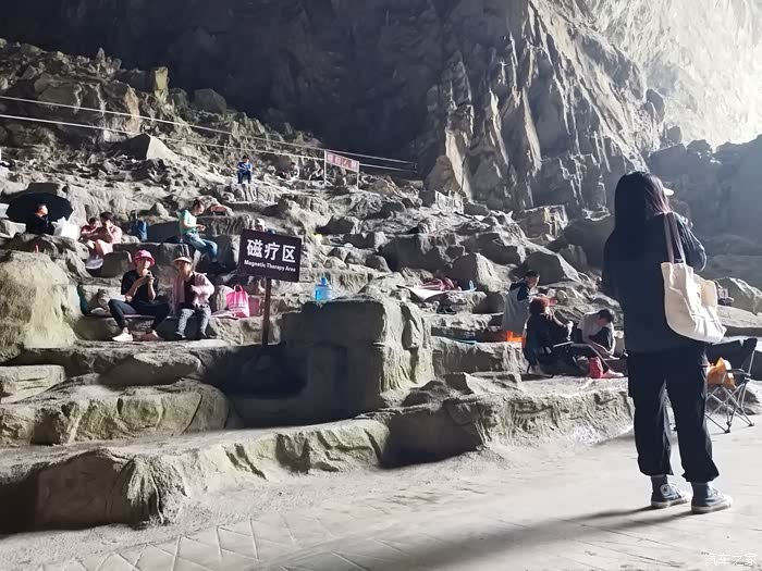 百魔洞洞里面有一个磁疗区,每天都有人在这个地方进行磁疗,据检测这个地方的地磁场是其他地方的两倍,达0.58高斯。因为巴马这个地方有一条断裂带,直接穿过地球的地幔层。每年来这里的人越来越多了,有的人说自己之前看不好的病,在这里慢慢恢复好了,也正是这个说法,所以才吸引全国各地的人慕名而来。