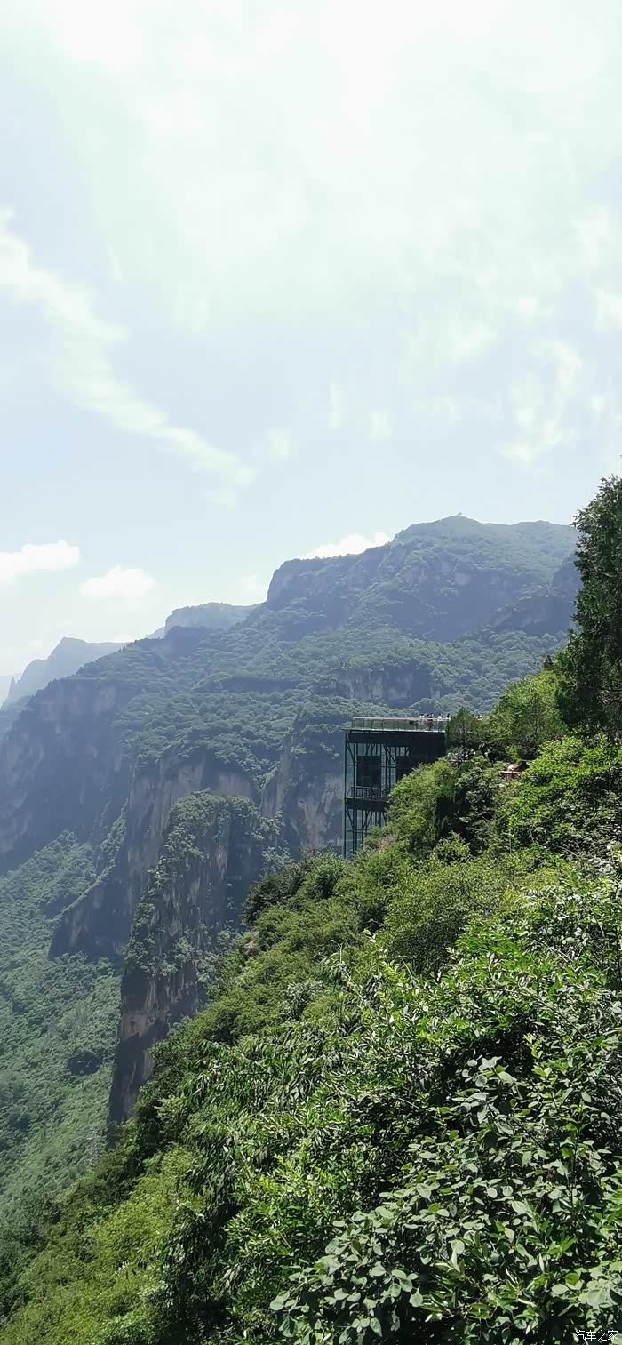 高处看两侧山谷十分壮观,蓝天白云与碧绿的山峰显得格外般配。夏天的山西并不是很热,甚至感觉还很凉快。人在山顶,你会觉得山再巍峨,人也能把它征服,而此时的山正默默无闻地向你展示,不远处它的伙伴比它更壮观。人在山谷,常会感叹山高不可攀,而此时的山却悄然无声向你披露,很多人正从它的峰头悠然而下。