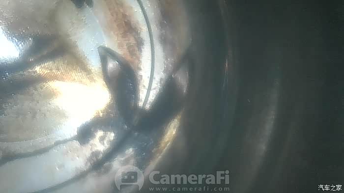 做完了保养,发动机余温也散的差不多了,让小师傅用内窥镜做个检查,效果喜人,看来产品确实和宣传的一样,也证明了思路是正确的。四个气缸的活塞顶部基本干净了,只有及少量没有完全溶解的积碳,活塞顶部的字迹清晰可见。
