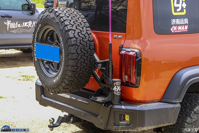 与之配套的运良峥嵘版后杠,集成了备胎支架、旗杆架、射灯位、下方和集成了拖车方孔。不过这套后杠售价比较贵,自重较大,如果加装越野副油箱的车友,不建议加装这套后杠,否则会出现塌屁股的情况。并且这款护杠目前全国缺货,需要提前订货才能买到。