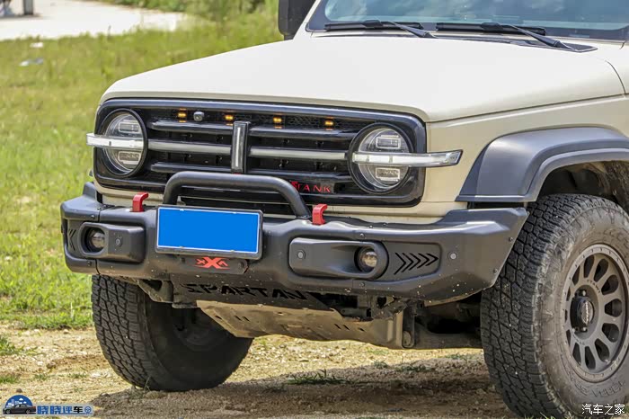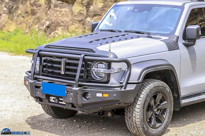 即将上市的运良穿越版的峥嵘护杠,造型方方正正,兼容绞盘和射灯,钢板的厚度不错,强度足够高,并且内部结构的设计也比较合理,但是自重也是偏大。