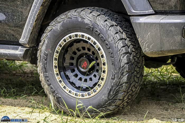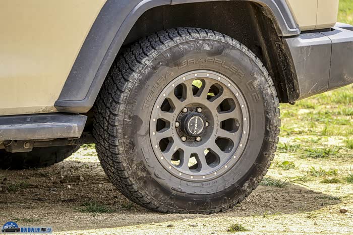 MAT款式的轮圈,仿防脱圈,低压铸造轮毂,ET值未知,搭配的依旧是原厂的固铂ATT轻量化越野轮胎。
