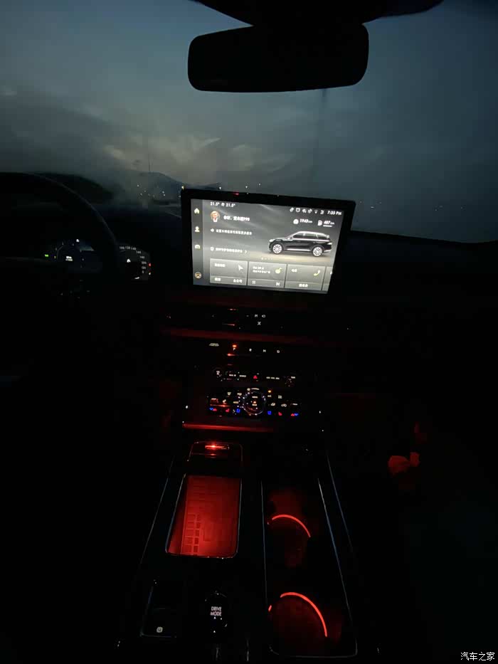 夜了,车外星河灿烂,车内灯火阑珊,红蓝细碎的仪表盘,还有钢琴按键式的档位设计,倒是真有了几分飞行员驾驶舱的既视感。