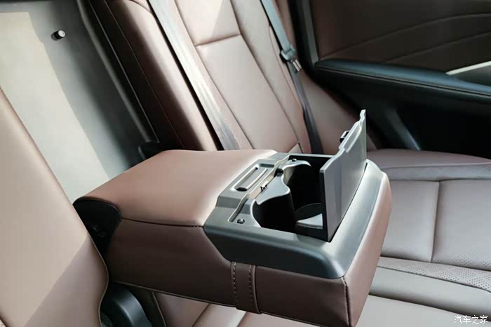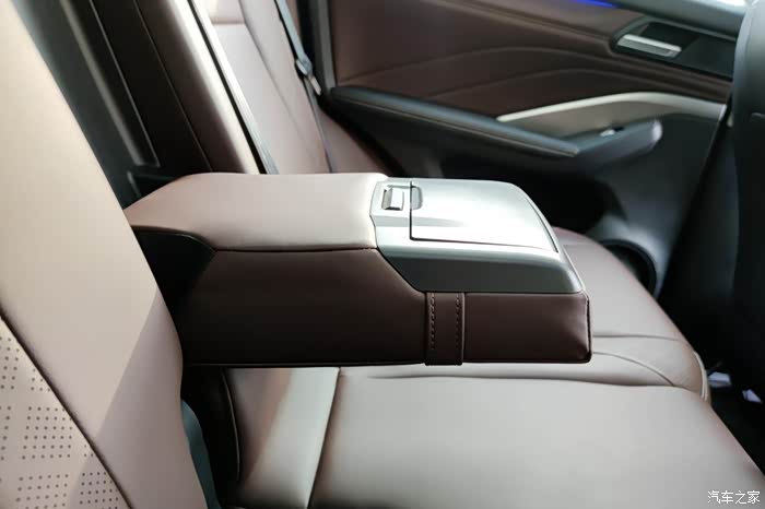 后排座椅中间有个中央扶手,皮质很柔软,很舒服,整体两边的高度差也不是很大。