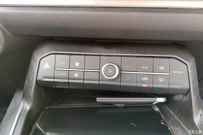 传统的空调设置区域设计很简洁,保留了常用的物理按键,这一点还是让我很喜欢的。下方是一个手机无线充电的充电板,这点设计我也很喜欢。