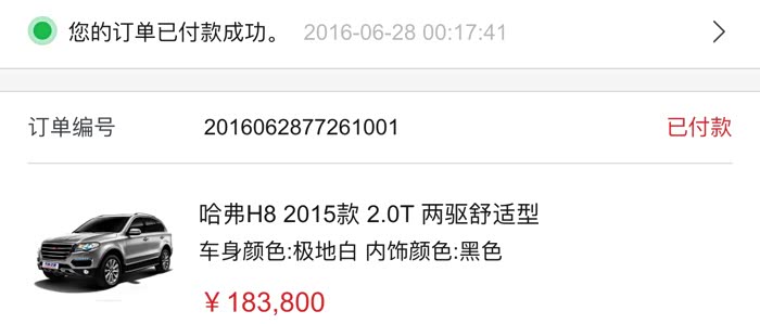 1、我订单下没有,哈弗说汽车之家还是在线下订,发了线下车商号码给我,我打电话问,4S说没查到我信息,现在我正咨询汽车之家〖霍晓星〗女士,答复是: