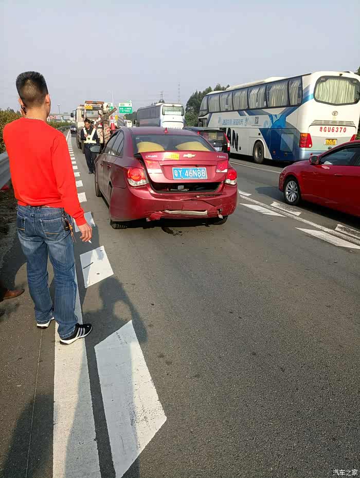 回家的路上,才开四五十公里,就发生追尾了。