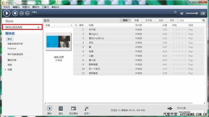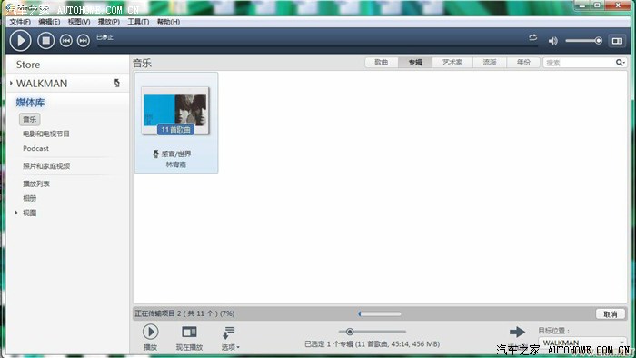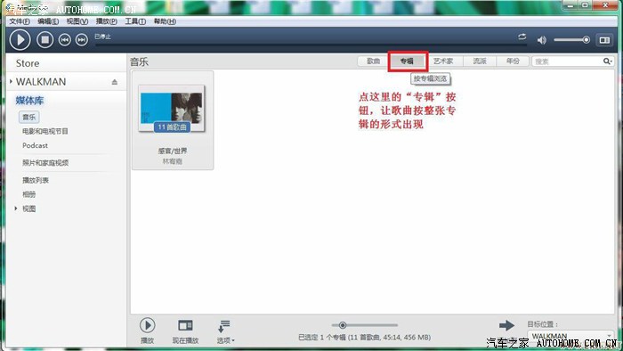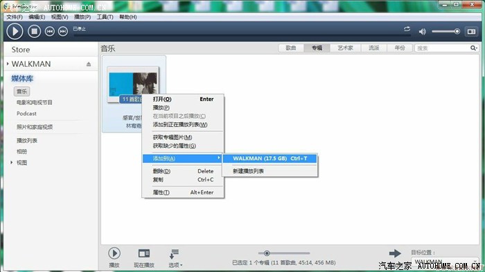 在下面专辑的地方右键“添加到”---“WALKMAN”