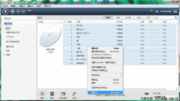 然后选第一首歌,右键“属性”,进去一首一首修改各自的曲目排序