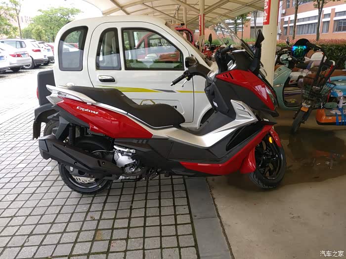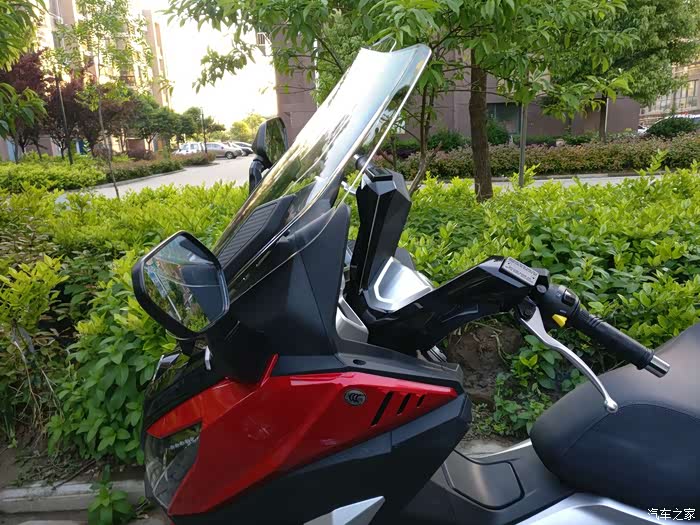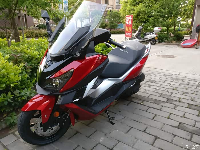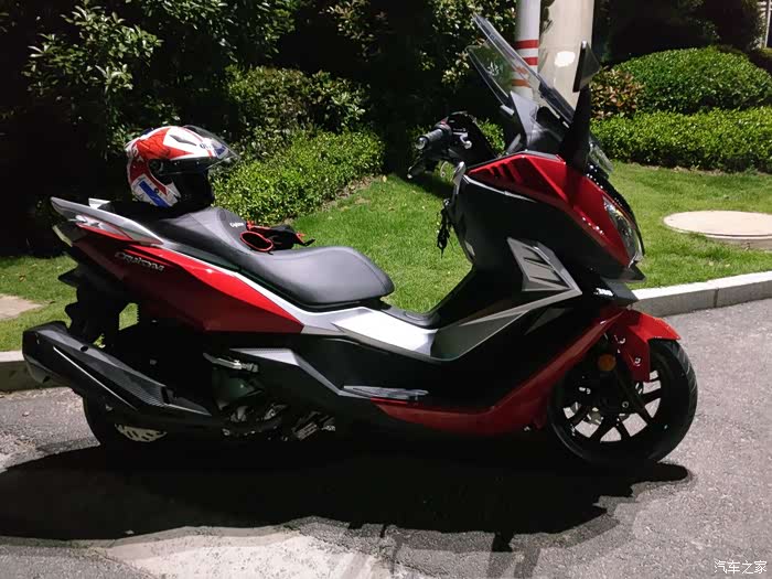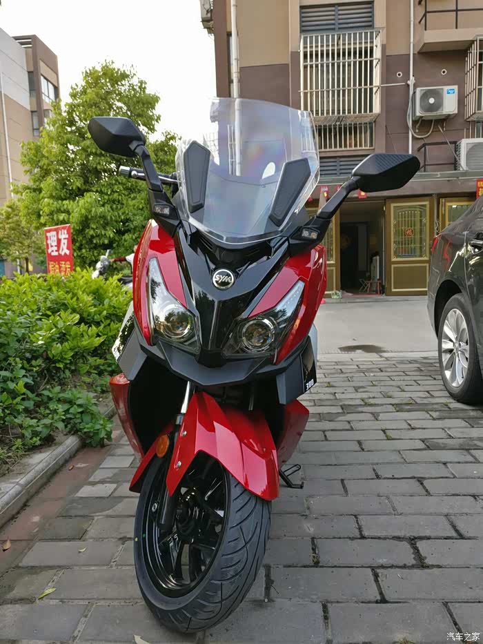 三月订车,差不多两个月拿车,个中心情不必言表。原本以为此次没有我订的红色,谁知经销商大哥给力得很,给了我一个大大的惊喜!价格相对来讲还是不错的,大贸车的各种税费大家也了解,还算良心。整车质感非常好,实车比官方图片漂亮太多,漆水接缝做工都属上乘,算是不小的意外。昨晚提车至此,才骑了几十公里,感觉车整且稳,驾感轻盈,减震及坐垫稍硬,可能和车定位运动休旅有关,但整车比档车舒服太多。四十公里骑回家,大挡风够赞,骑行三角极舒服,一点儿不累。马桶够大,两个盔没任何问题,小长途一个人的行李足够放。车灯是全时开着的,不好关闭,台湾法规就这样?不过也好,人家当是自动大灯了。