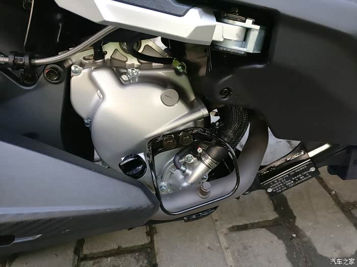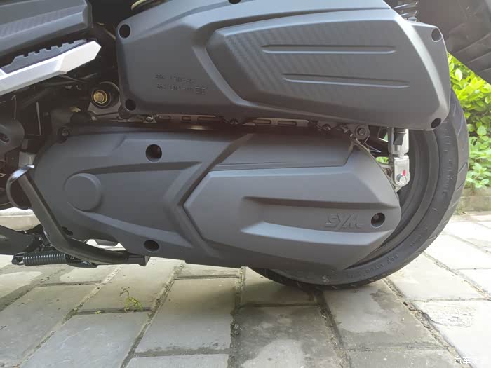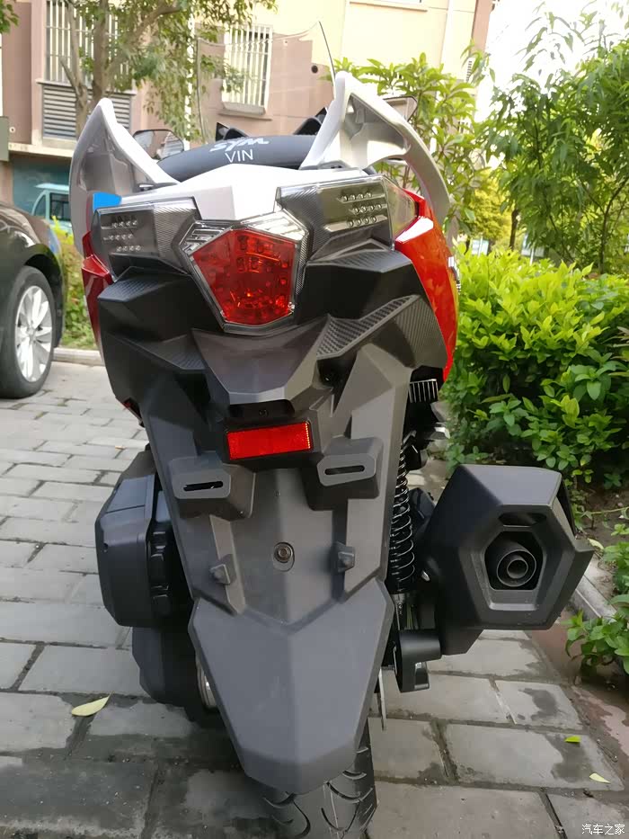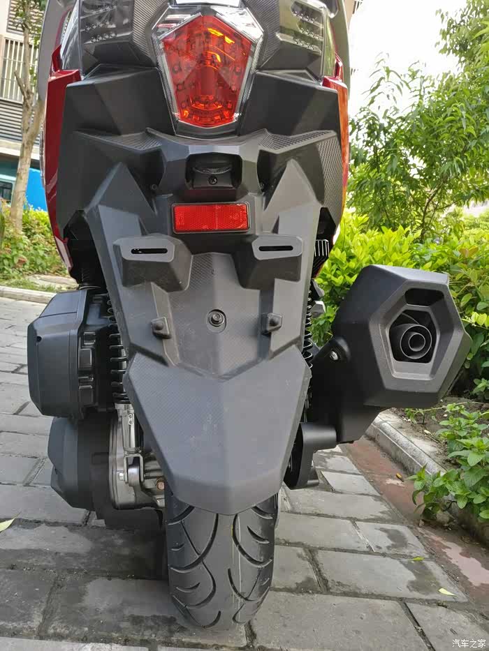后胎感觉还算粗壮,排气外有仿碳纤纹防烫罩。