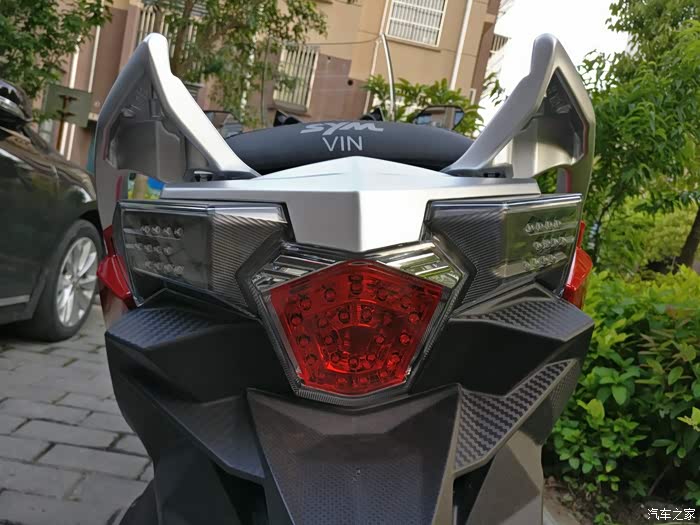 前刹由台湾内销车的浮动加辐射减配了,外销车都这样,但绝对够用。全车黑色面板都是仿碳纤纹,很漂亮。