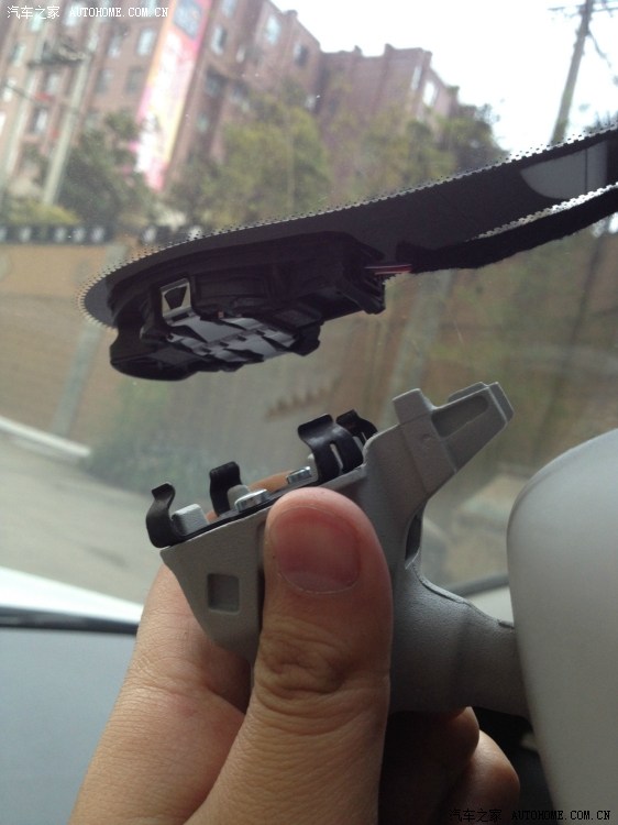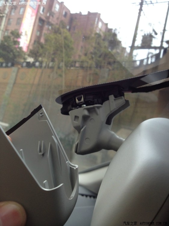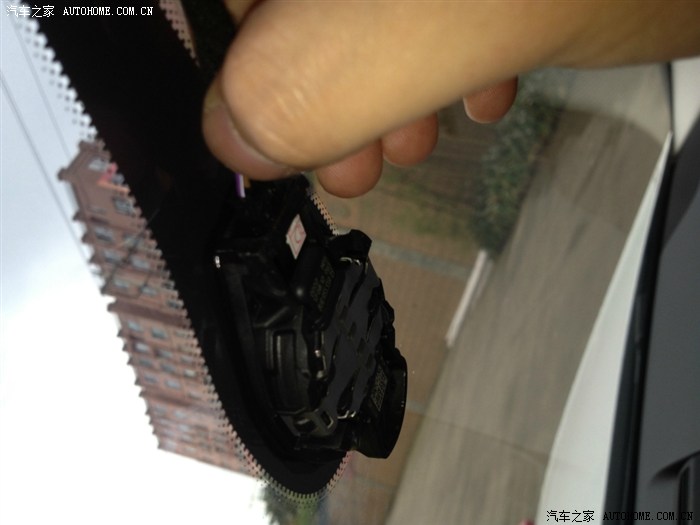 7、开始拆后视镜,因为感应器就在这里面。13款的A4L直接就可以换掉里面的那块假感应器,换上新的自动感应器就OK了,听说老款低配的很痛苦,需要连挡风玻璃一起换。。。 扯远了,开始拆,注意先拆上面这块,不用太大力,捏住稍微用力就取下来了,两边各有一个小卡子。