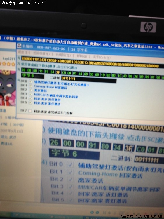 37、然后就是刷其他的隐藏,我只刷了其中几个我觉得必要的,例如倒车时右边倒车镜下翻(需要正常行进15KM/H以上速度才又自动复位),刷了蓄电池电量显示、运动指针、锁车和解锁有蜂鸣B一声、等等,有的是说明书上有的,有的是潇洒老白的帖子上有的。我举点例子,其他的各位就参考说明书和高手的帖子去研究了。