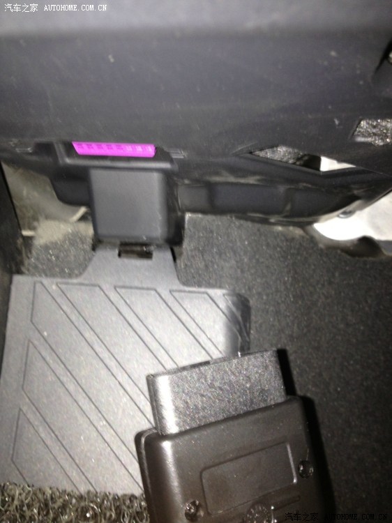 25、OK了。硬件部分安装完成,下面是软件部分的调整了。把5053数据线的一头连接到你的爱车之上,连接的位置就在驾驶舱左脚踏板上方,一个粉红色的卡槽,插进去