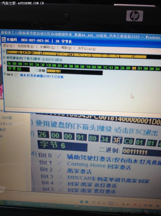 小弟自己一个人动手给刚提的爱车白色13款2.0T A4L标准型改自动大灯和感应雨刷,然后顺便刷了部分自己觉得有用的隐藏,分享在这里后有不少贵州的朋友来询问配件和帮忙改装的事宜,由于人数太多不能一一回复,在这里统一回复了。配件我原来买的那家已经找不到了,淘宝上很多的,自己一搜就一大片,应该都没什么问题,你买来别忙付款,确认装上没事在付也不迟。如果有朋友不想自己动手改自动大灯、感应雨刷和刷隐藏的,实在让小弟代劳也行,私信我好了,因为我平时还有事做,时间要约一下,收点辛苦费好了,5053线有现成的,自己把配件买好就行。每天上网时间不多,回复不及时请见谅哈,建议大家可以自己动手。 最近我准备把自动折叠倒车镜和自动防眩光后视镜改了,改成功了后会发帖上来跟大家分享,有兴趣的朋友可以联系我。