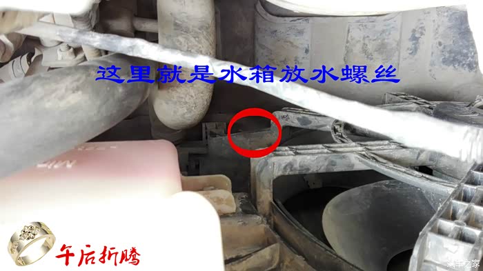 接下来就是按照下图所示的位置找到放水螺丝。
