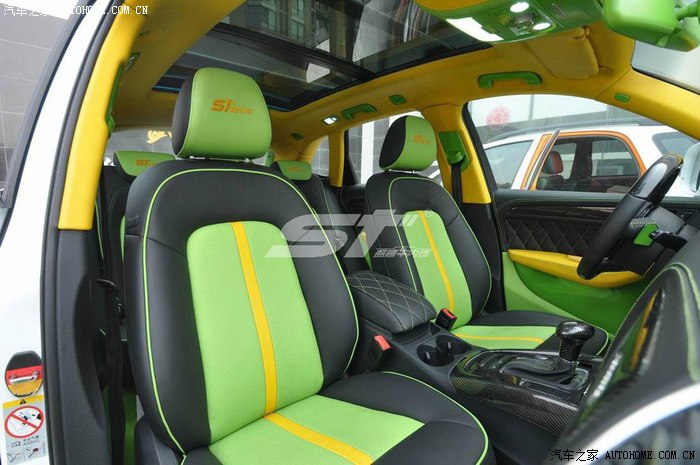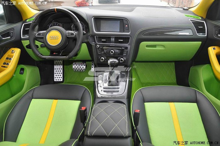 就如同盛唐汽车内饰改装的全新奥迪Q5内饰,采用黑、绿、黄三色真皮搭配,只有你置身其中时,哪怕随意一瞥,也能发现独到的精湛之处;