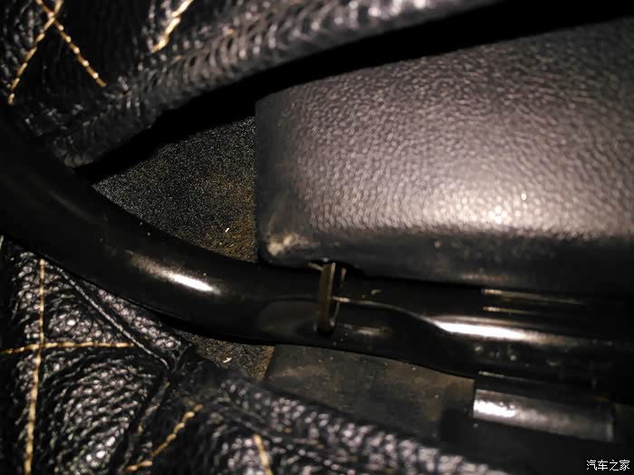 如图,后排双人座椅下的卡扣锁死了,摸了半天也没找到任何开关