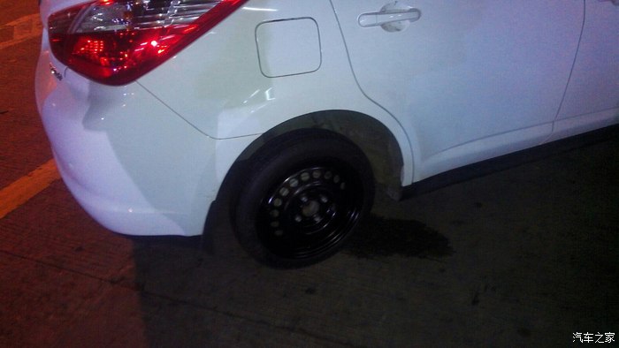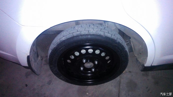 昨晚高速,高速服务区加油,发现后右轮子没气了,问问服务区补胎,说用橡皮补的,80大洋,觉得贵了,自己动手换备胎,备胎真的可怜太小了