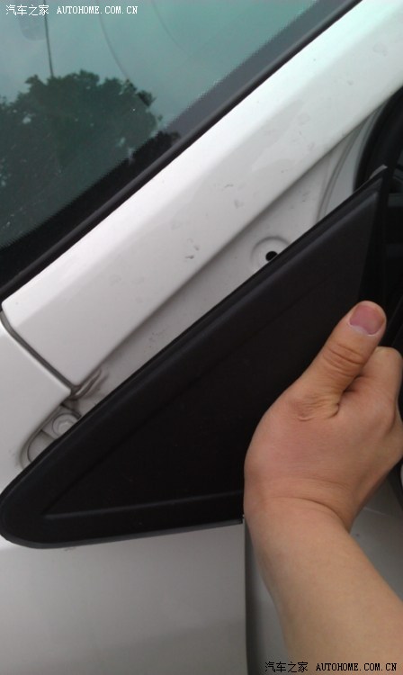 先搞A柱三角位,将黑色胶板掰下(用点力即可)