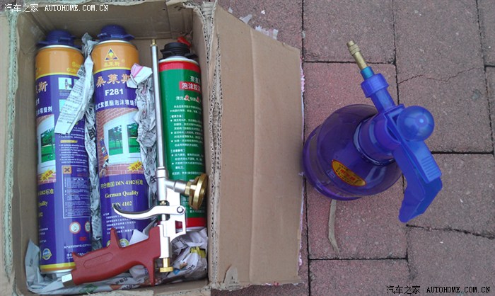 箱内是淘回来的,右边的是浇花的喷壶。(有些tx说一瓶发泡胶就够,我认为2瓶才够)