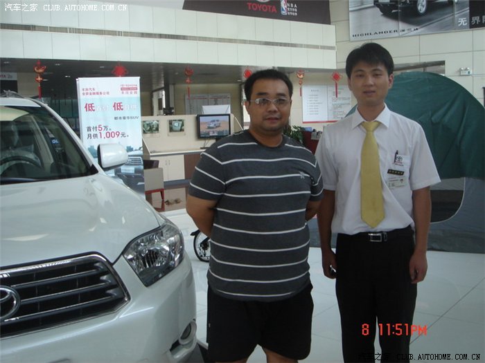 和4S的XSDD合影,人不错 看胸牌 5星滴 这车是新上市的汉兰达 加2万提车,不然要等到年底了