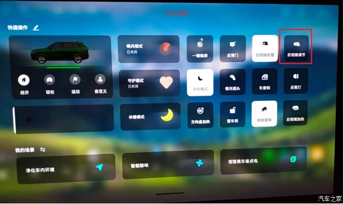 点击“后视镜调节”,即可打开如方法一中的界面,即可进行相应的调整。