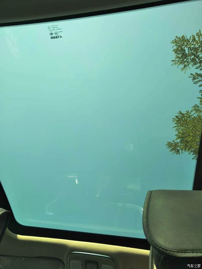 外面阳光明媚,透过巨大天幕看到了绿树蓝天