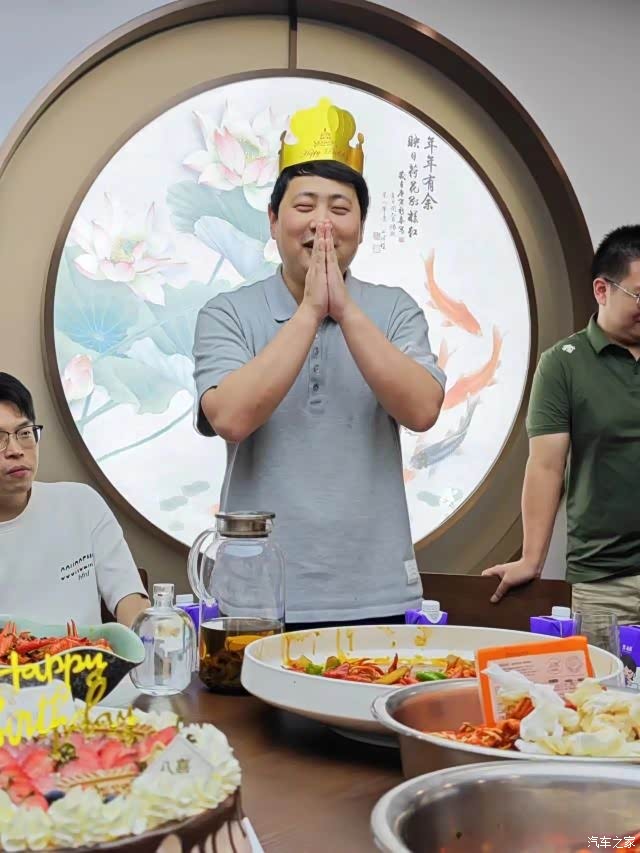 饭桌上有酒有肉,小龙虾管够,大伙喝着小酒,说着故事,一起交流着用车心得,一顿饭欢声笑语没停过。而且正好张总生日临近,就提前庆祝了,一位有心的车友自己有事没能来,还特地订了个大蛋糕送到。