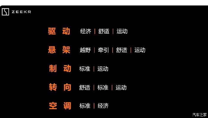 经济模式:车身高度为低,动力表现更为柔和且有限扭,一般在电力不充足的时候使用该模式,主要是为了省电,百公里加速大概在9秒左右,最低跑过能耗我跑过17Kwh/100km,有的大神能跑到14-15。驾驶时,方向盘会稍重一些、空调会自动变成经济模式,空悬效果比舒适有差距,个人感觉偏硬,不是很喜欢所以用得少。用得少的原因还有一点,就是极氪的补能网络挺健全,除了自营桩外,还和很多第三方进行了合作,不用有过多的里程焦虑。运动模式:车身高度为低,悬挂调至最硬状态,方向盘也变得最重,主要特点是踏板响应快、加速快,非常暴力。3.8S的百公里加速度飙车专属,会有种灵魂出窍的惊心动魄,路上无对手。小典作为女孩子,用之少之又少,偶尔会在高速上跑跑。但用得少也必须要有,“既要、还要”的心态是我选择001YOU版的原因之一。
