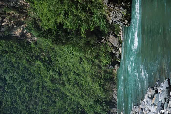 漂流就像在飞翔。进入险滩,跃上浪尖的时候,橡皮艇的前半部腾空弹起,眼皮底下的江水就成了一口锅。这时的感觉是要飞,要飞过旋转的水锅锅底,这感觉只是瞬间,根本不容你愣神,船尾又猛地一抬,船头飞冲向对面的锅沿,飞向另一个浪尖…