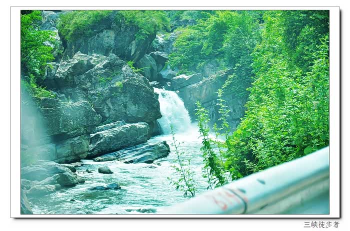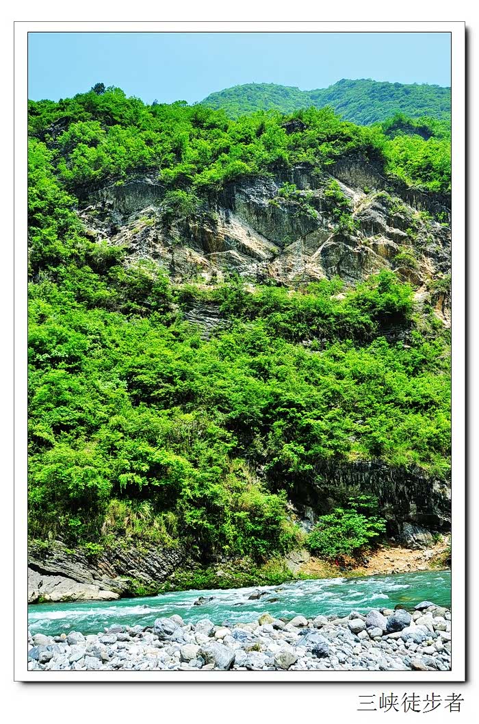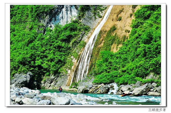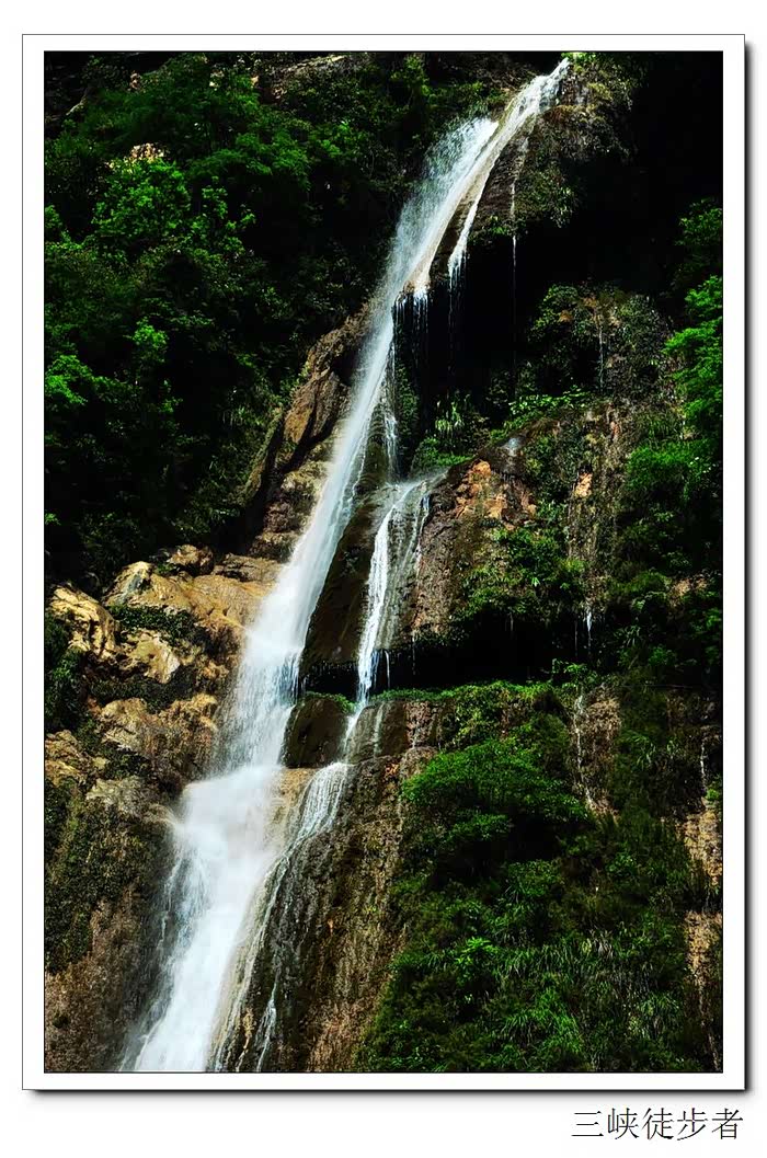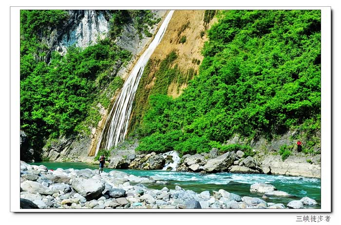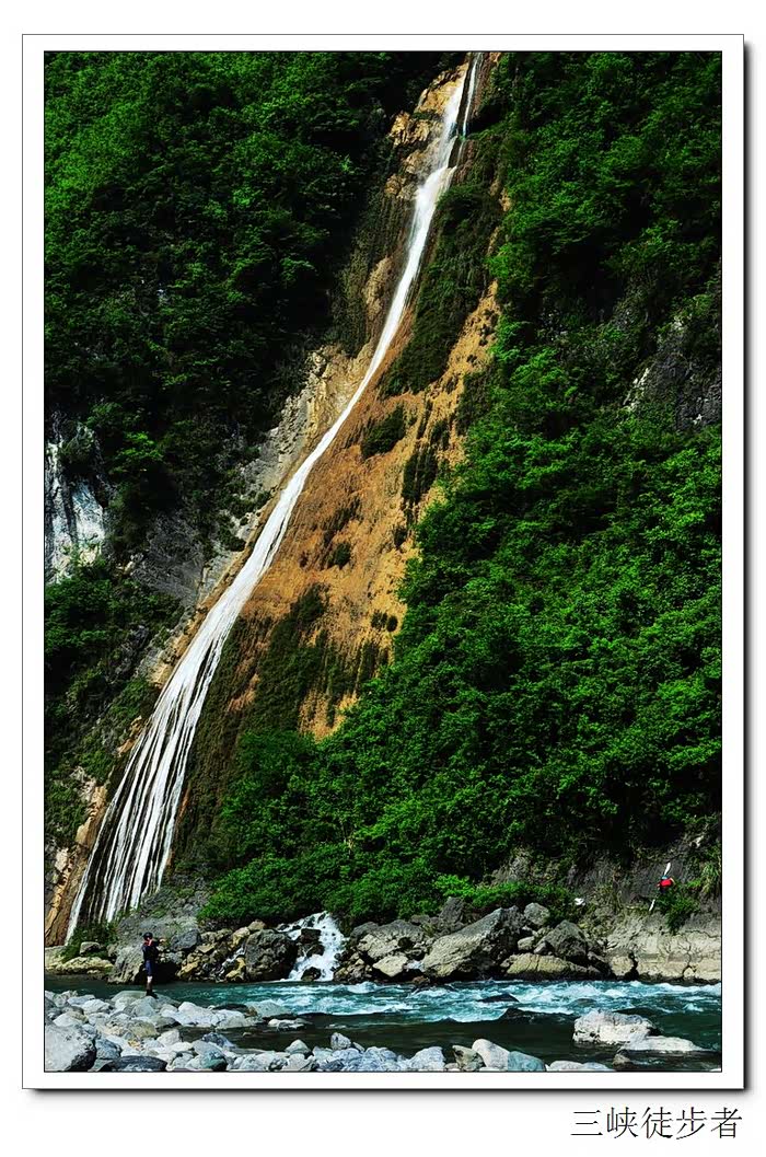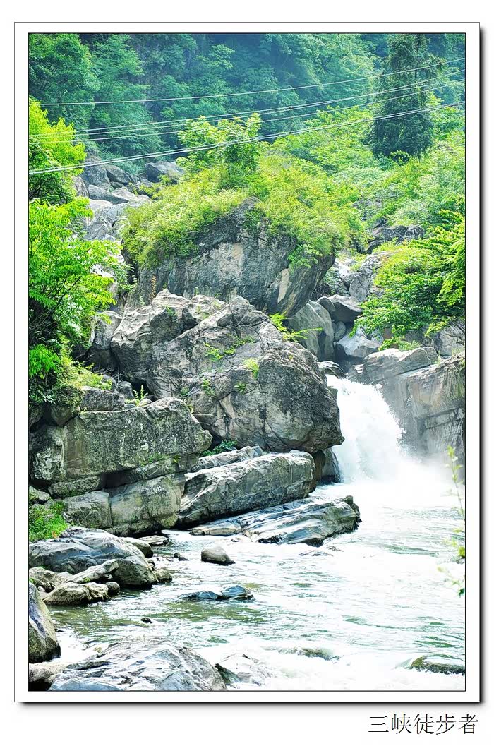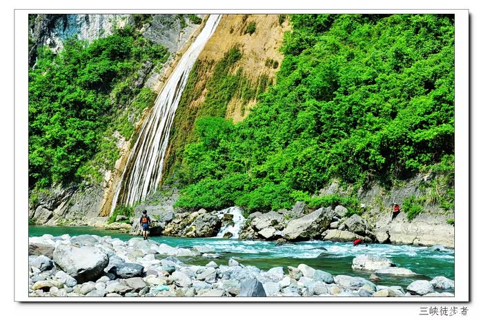 神农溪水犹为清冽,我没看到游鱼,但石籽可粒粒数得清楚,从山顶飞流直下的瀑布,远远望去,瀑布飞注,宛如白练当空,丝绢抖动,这真是再天然不过的美景了!